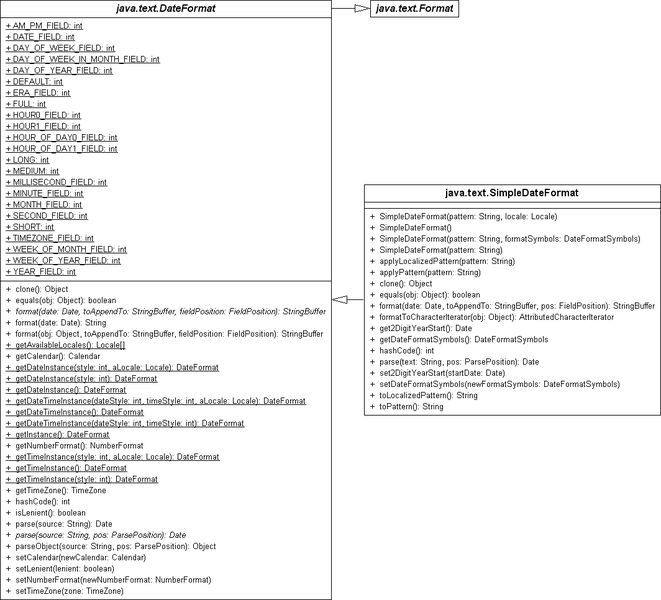 Abbildung 4.6: Vererbungsbeziehungen von DateFormat und SimpleDateFormat