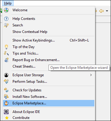 Nach dem Start von Eclipse wählen wir im Menü Help • Eclipse Marketplace (siehe Abbildung 18.1).