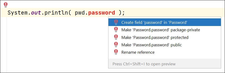 // System.out.println( pwd.password ); // The field Password.password is not visible